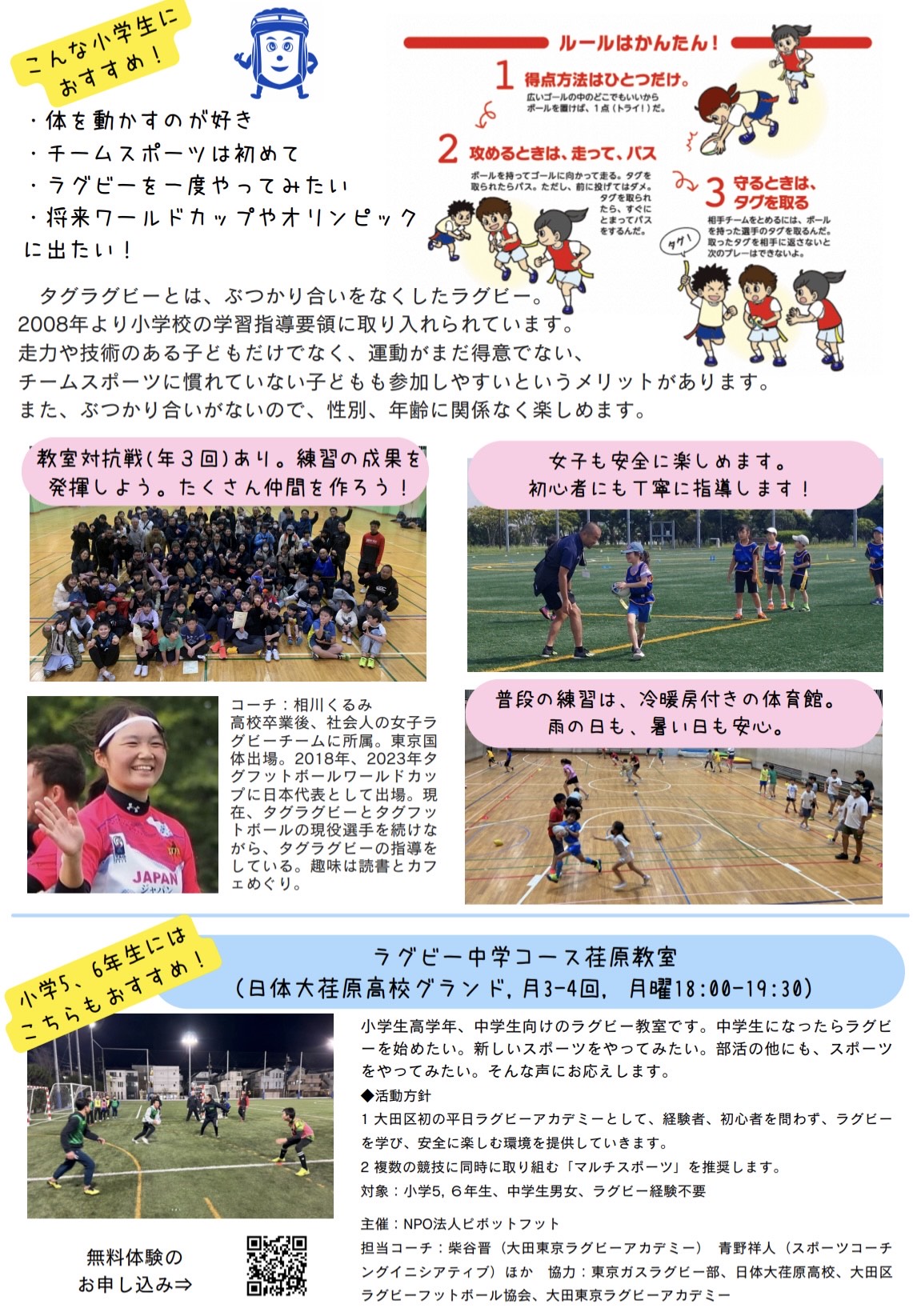 5月にタグラグビー出雲教室体験会を実施いたします!